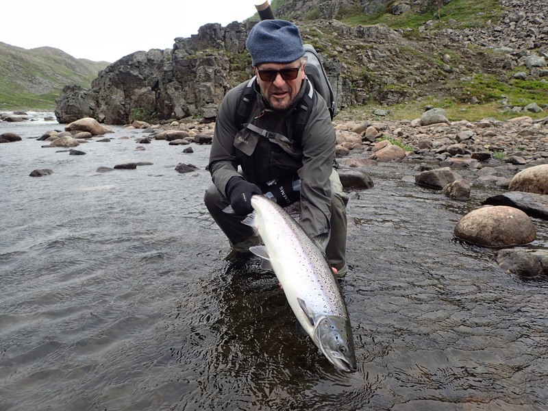Сидоровка – одна из красивейших диких лососевых рек Кольского полуострова. Как и все, в этом регионе реки, она имеет стадо преимущественно весенне - летнего захода, первые особи которого начинают входить в Сидоровку в начале июня. По-видимому, так как в низовьях реки почти нет удобных мест для долговременных стоянок лосося, рыба, несмотря на высокую и холодную воду, начинает быстро продвигаться наверх. И первые её базовые пулы находятся примерно в трёх километрах от моря, там, где и расположен лагерь. Июньская сёмга на Сидоровке имеет хороший вес, 8-9 килограммов для реки не такая редкость, попадаются рыбы и за метр длинной. В это время так же ловятся отнерестившееся прошлой осенью вальчаки, которые сваливаются вниз, навстречу «свежим» группам лососей. Осёнка (сёмга озимой формы, которая ожидает нереста спустя год после захода) немногочисленна, но присутствует в реке и имеет неплохие кондиции и вес порядка 6-8кг. Так же в прилове присутствует кумжа.