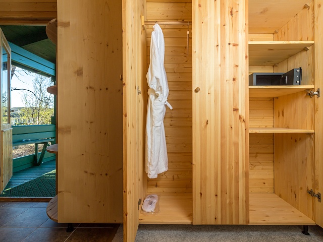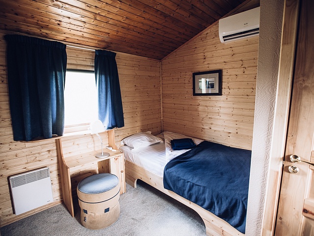Accommodation. Starting from the 2016 season guests are offered single accommodation in a deluxe cabin. All cabins have undergone a quality reconstruction. Now, each of them are equipped with an individual toilet and shower, electric heating, conditioner with climate control, mini-bar, personal safe, drying closet for wet clothes and lots of other stuff needed for comfort like hairdryer, bathrobe and slippers. Cabins are heat-insulated, equipped with spacious wardrobes and wide beds with orthopedic mattresses.